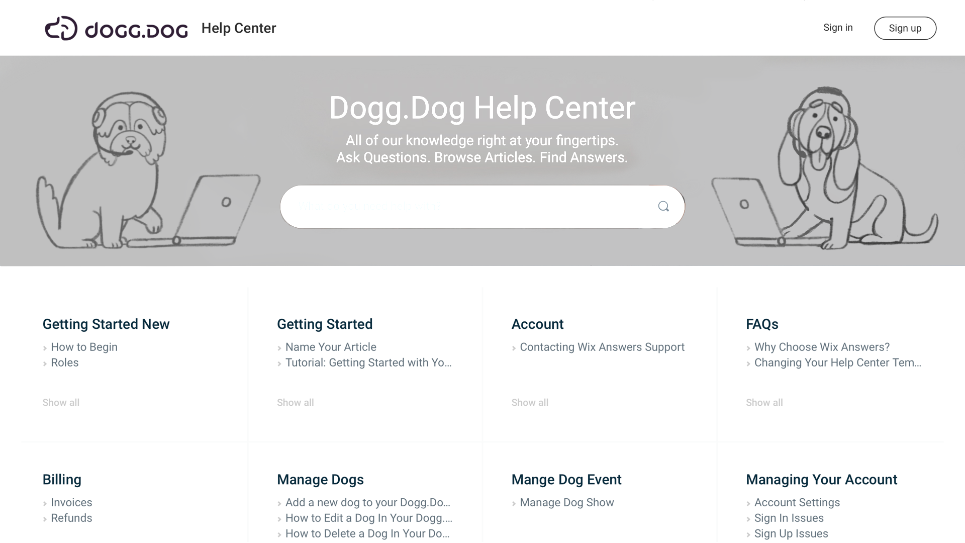 In order to give the best support for our users, Dogg.Dog - Cloud-based dog software solution has chosen Wix Answers for the tool to support for our users.